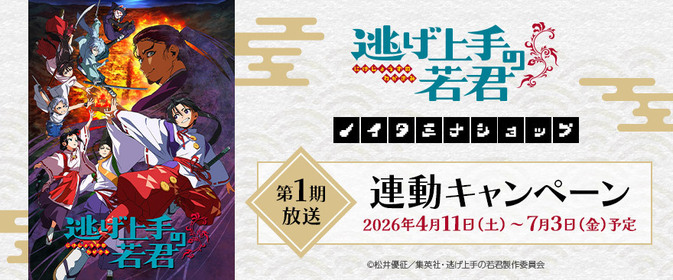 さらに期間中、TVアニメ「逃げ上手の若君」関連グッズを2,000円(税込)お買上げごとに、